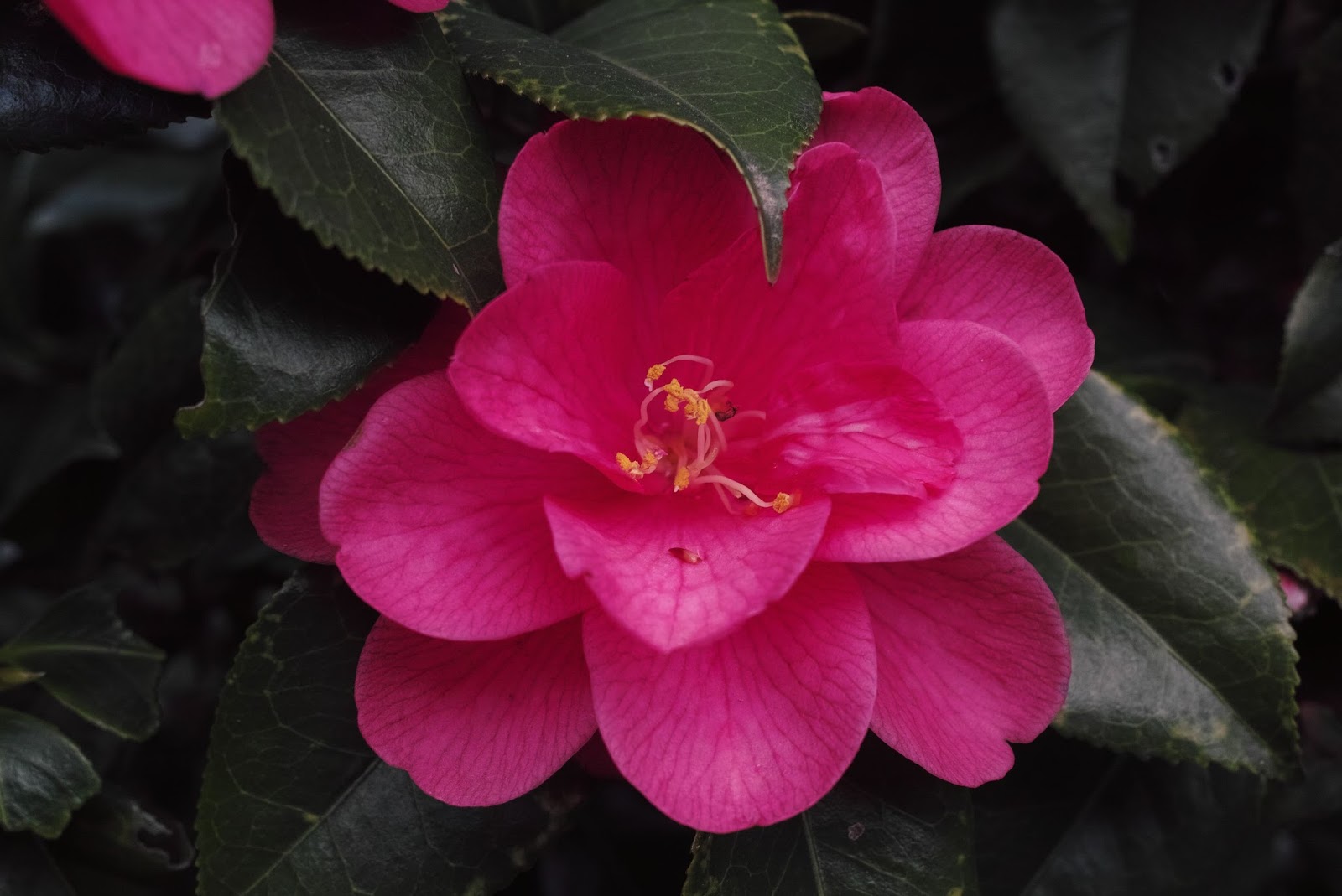| ヤブツバキ。分布:日本(本・四・九・沖)、朝鮮、中国 Camellia japonica var. japonica |